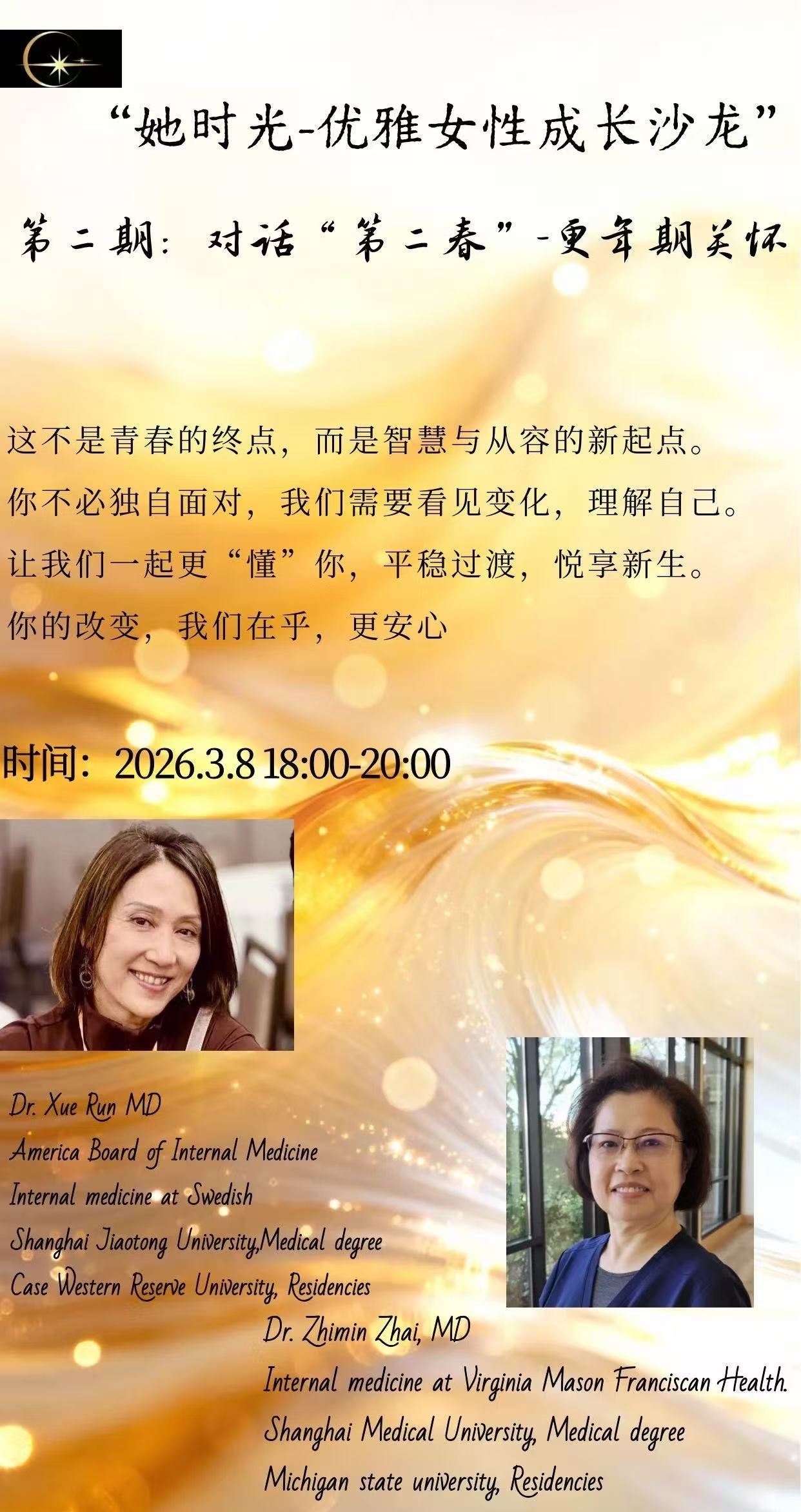 2026新年伊始,飛天舞蹈艺术中心和星月文化艺术交流中心隆重为西雅图地区推出精心打磨的 【她时光】优雅女性成长沙龙系列!